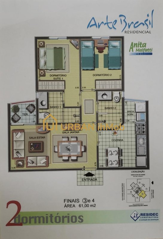 O apartamento está localizado em Vila Santa Tereza, Bauru - SP, no condomínio Arte Brasil, tem 65 m², 2 quartos, sendo 1 suíte, 2 banheiros e 1 vaga.