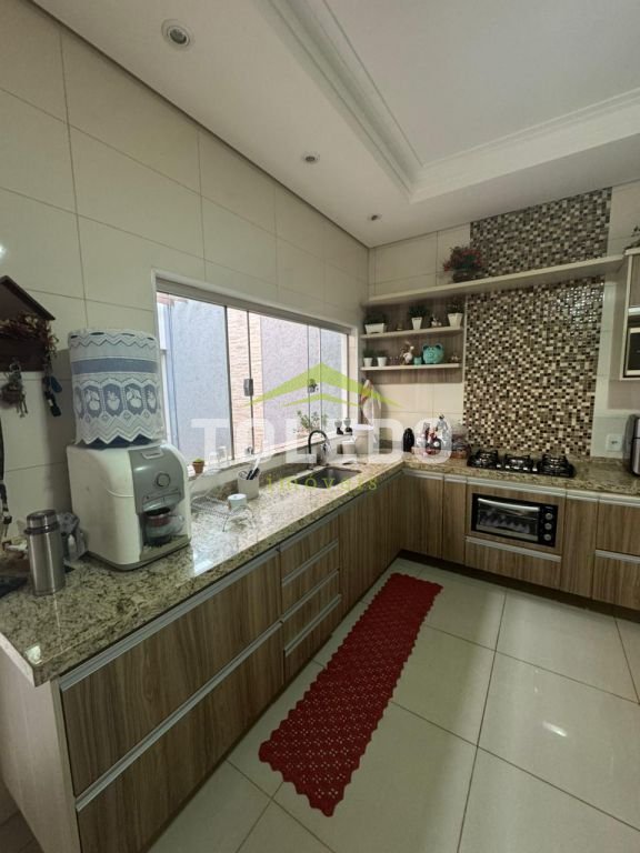 03 dormitórios sendo uma suíte com espaço para closet e varanda espaçosa (suíte na parte superior), sala de tv, jardim de inverno, cozinha com armários, forno e cooktop, área de lazer com churrasqueira, lavanderia coberta, lavabo, banheiro social, garagem coberta para 02 carros.