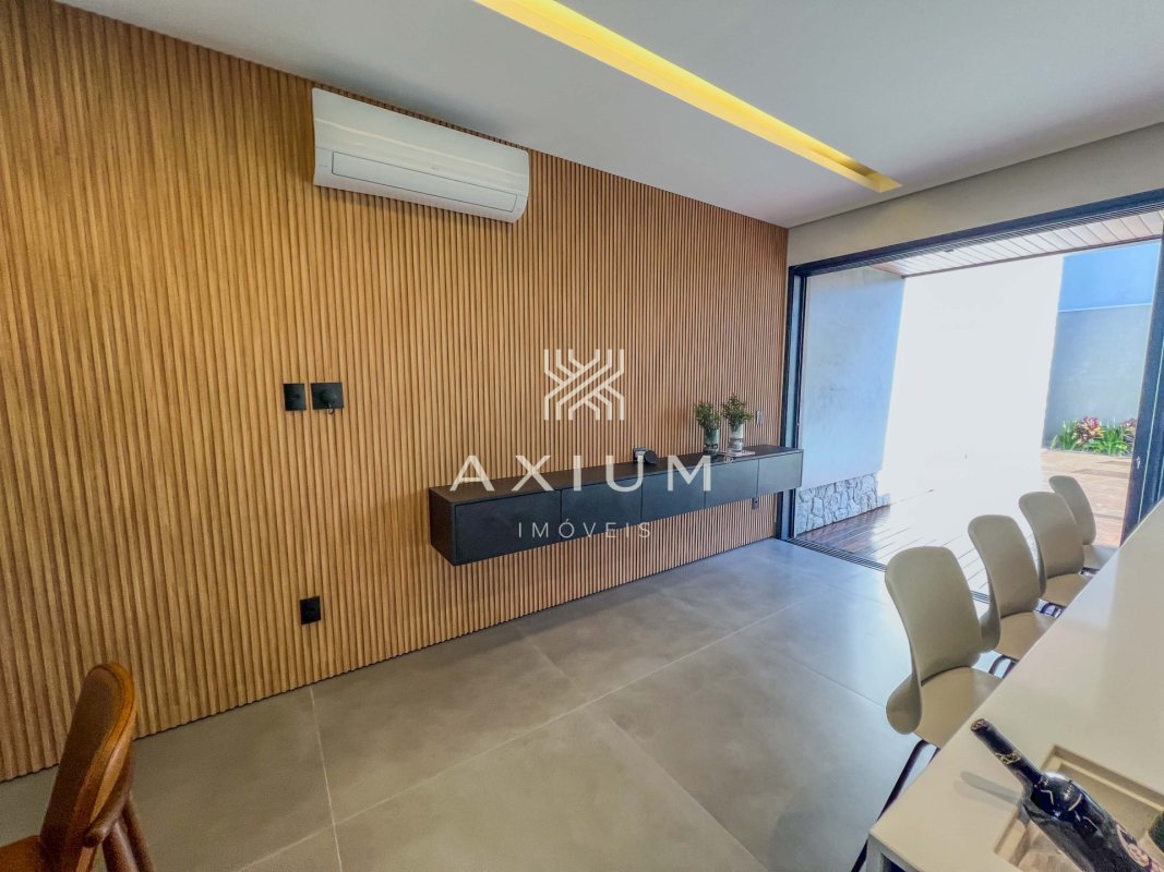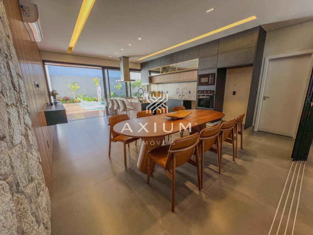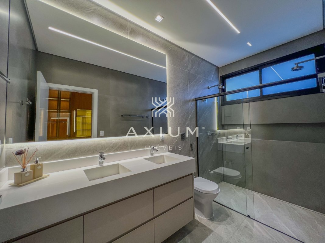 A casa está localizada em Jardim Shangri-Lá, Bauru - SP, no condomínio Residencial Villa Dumont, com 306 m², 4 quartos, sendo 3 suítes, 5 banheiros e 6 vagas.