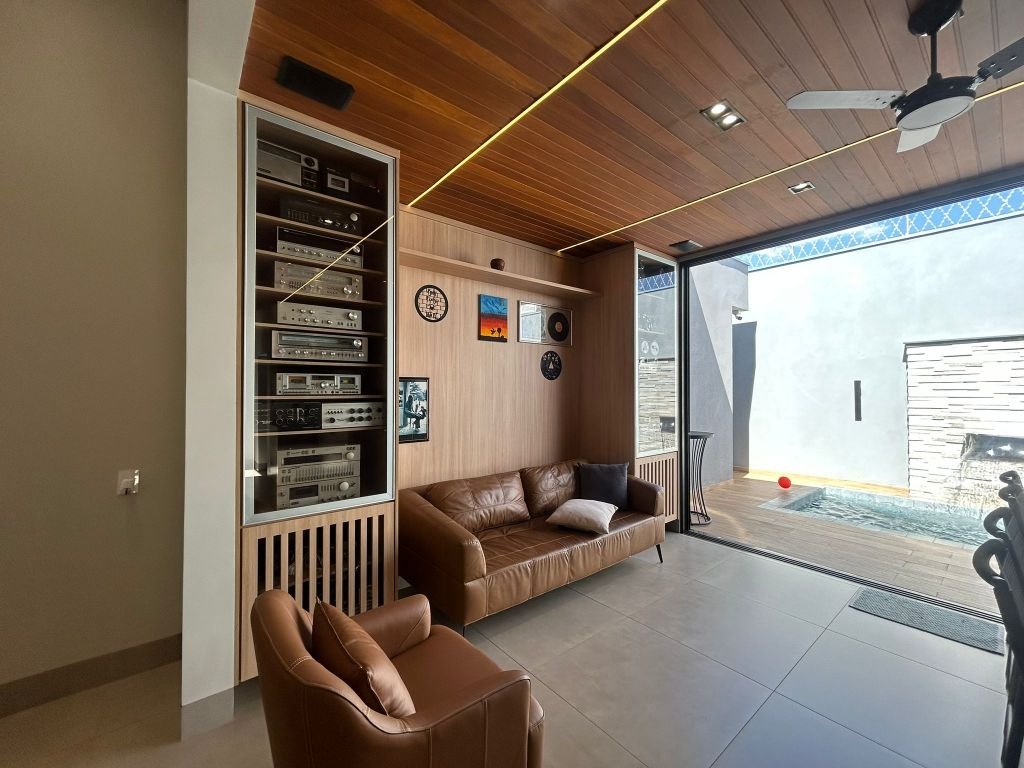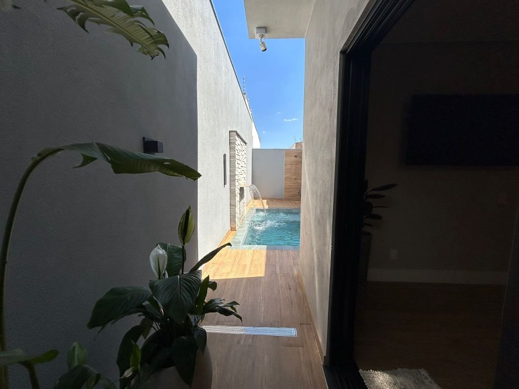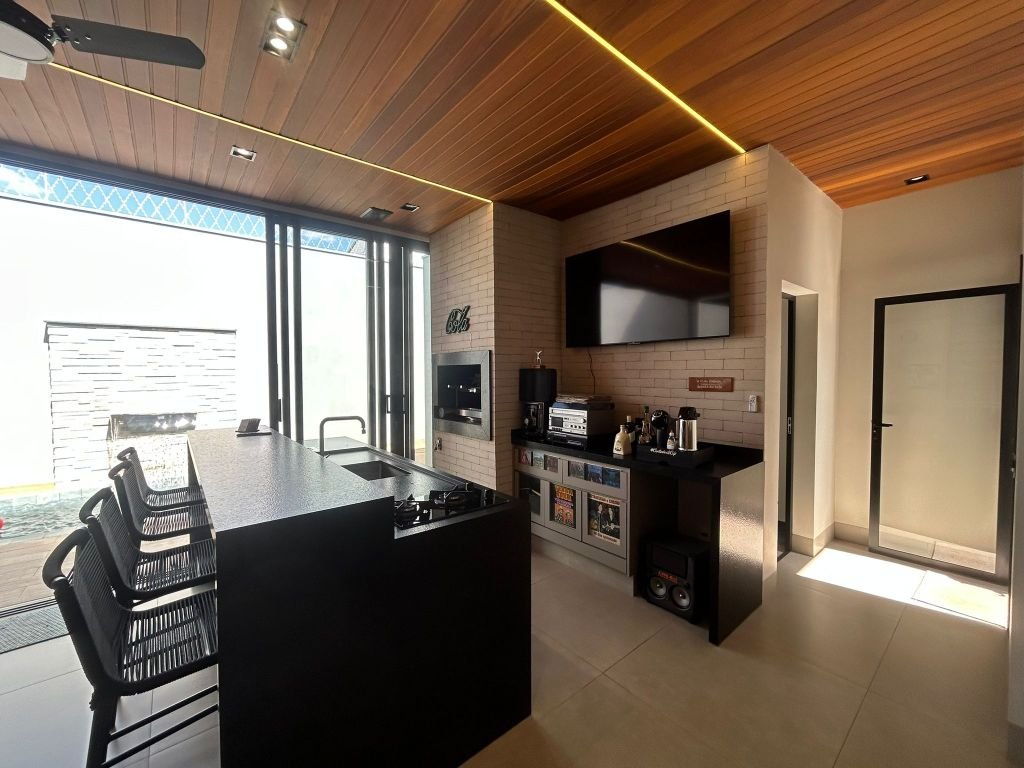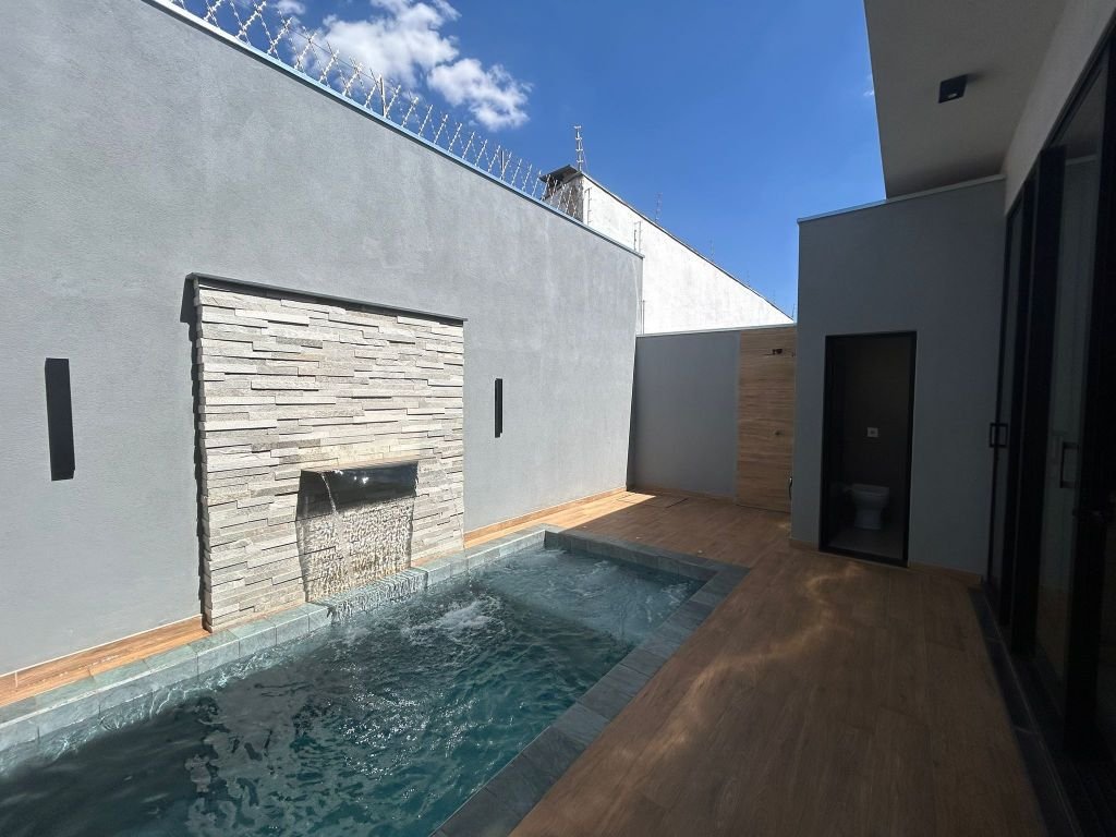 03 DORMITÓRIOS PLANEJADOS, SENDO UMA SUÍTE, SALA DE TV COM PAINÉL DE TV, BANHEIRO SOCIAL, SALA DE JANTAR / COZINHA COM ARMÁRIOS PLANEJADOS, COOKTOP, FORNO, COIFA, LAVANDERIA COBERTA, ÁREA DE LAZER COM CHURRASQUEIRA, LAVABO, PISCINA COM HIDROMASSAGEM E CASCATA AQUECIDA E GARAGEM COBERTA PARA 03 CARROS.