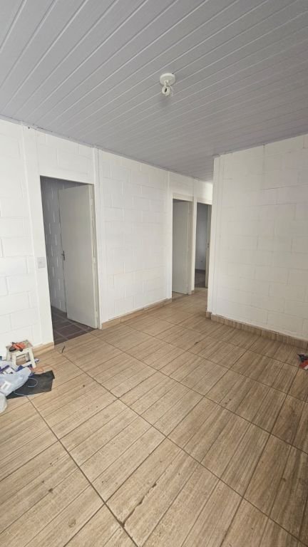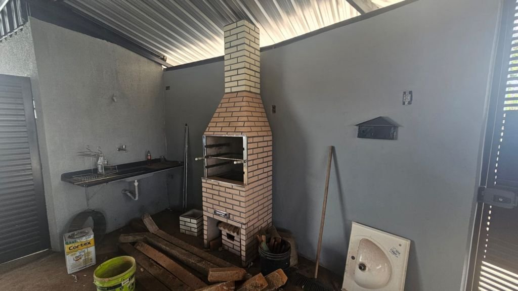 Residência com 3 dormitórios, sala, cozinha, w.c. social, w.c. de serviço, lavanderia, churrasqueira e garagem.