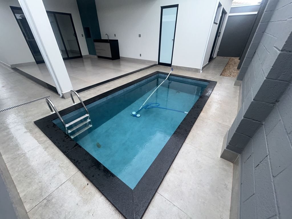 03 DORMITÓRIOS SENDO 01 SUÍTE, SALA AMPLA COM PÉ DIREITO ALTO, BANHEIRO SOCIAL, COZINHA, ÁREA DE SERVIÇO FECHADA, ÁREA GOURMET COM PISCINA E GARAGEM COBERTA PARA 02 CARROS.