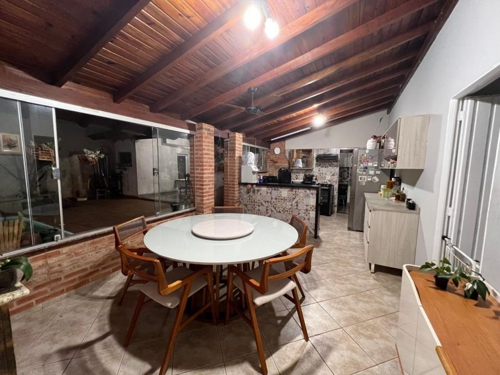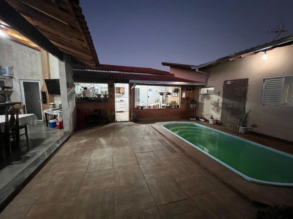 04 DORMITÓRIOS, SENDO TRÊS SUÍTES, 3 SALAS, SALA DE JANTAR/COZINHA, ÁREA DE LAZER COM CHURRASQUEIRA, LAVANDERIA COBERTA, BANHEIRO, PISCINA E GARAGEM COBERTA PARA 02 CARROS E DESCOBERTA PARA MAIS CARROS.