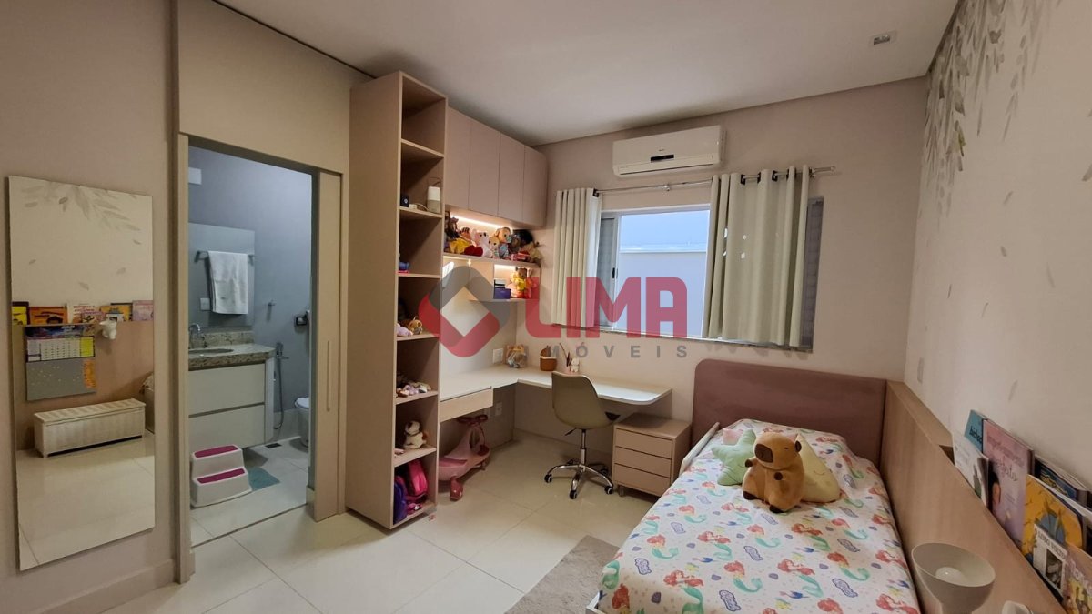 Com 3 suítes, closet no quarto do casal, repletos em armários e ar condicionados, sala em L 2 ambientes com ar condicionado, cozinha planejada, lavanderia e 4 vagas de garagens. Possui também piscina, Aquecedor Solar e Fotovoltaica, Escritório e despensa nos fundos.