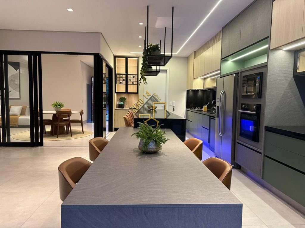 * Cozinha equipada, geladeira Side by Side, microondas, forno elétrico , cooktop, coifas, churrasqueira, câmara fria, cervejeira, já com triturador de alimentos instalada na pia.