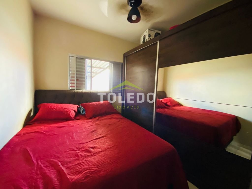 02 dormitórios, sala, cozinha, banheiro social, lavanderia, churrasqueira, piscina, garagem coberta para 02 carros.