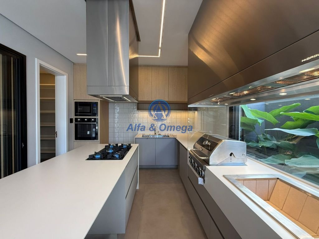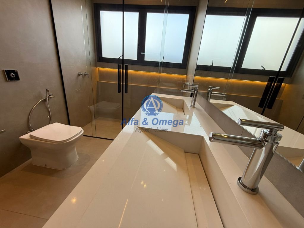 Sistema completo de iluminação, aquecimento de água e piscina, box nos banheiros, metais, bancada, pias e cubas