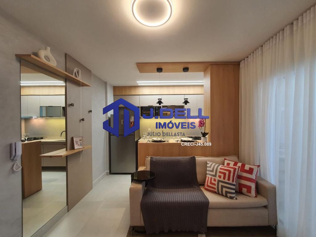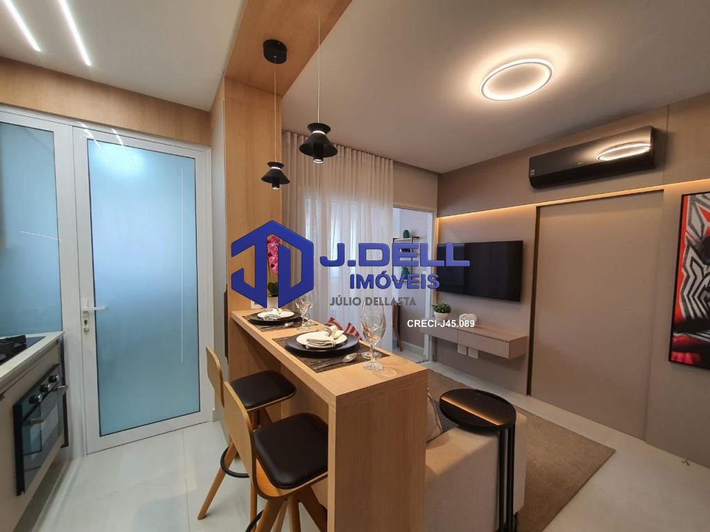 Com 1 dormitório, o1 banheiro, sala e cozinha Living integrado, com armários planejados. Área de serviços, 01 vaga de garagem coberta. Medidores de água e gás, individuais, não incluso no valor do condomínio.
