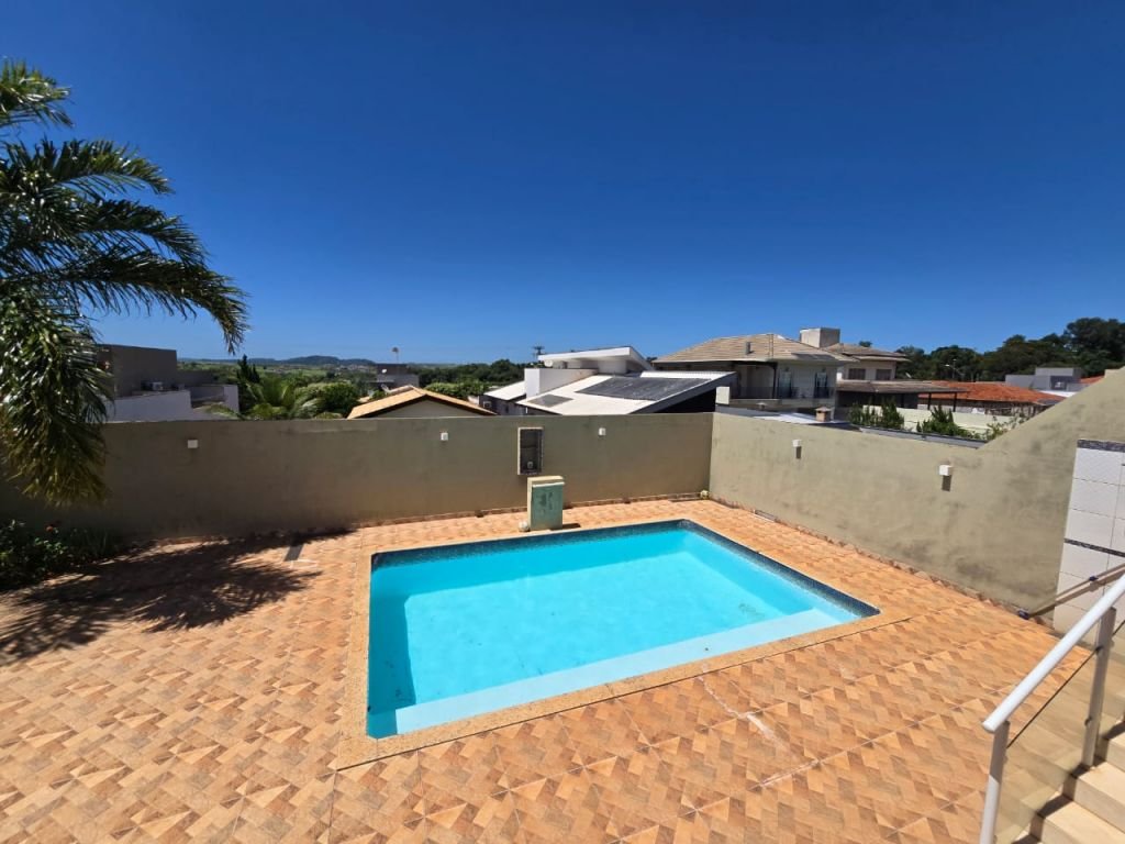 Residência com 3 suítes sendo uma master com closet, sala ampla, cozinha com a/e ilha e cooktop com forno elétrico, lavabo, w.c serviço, piscina, churrasqueira.