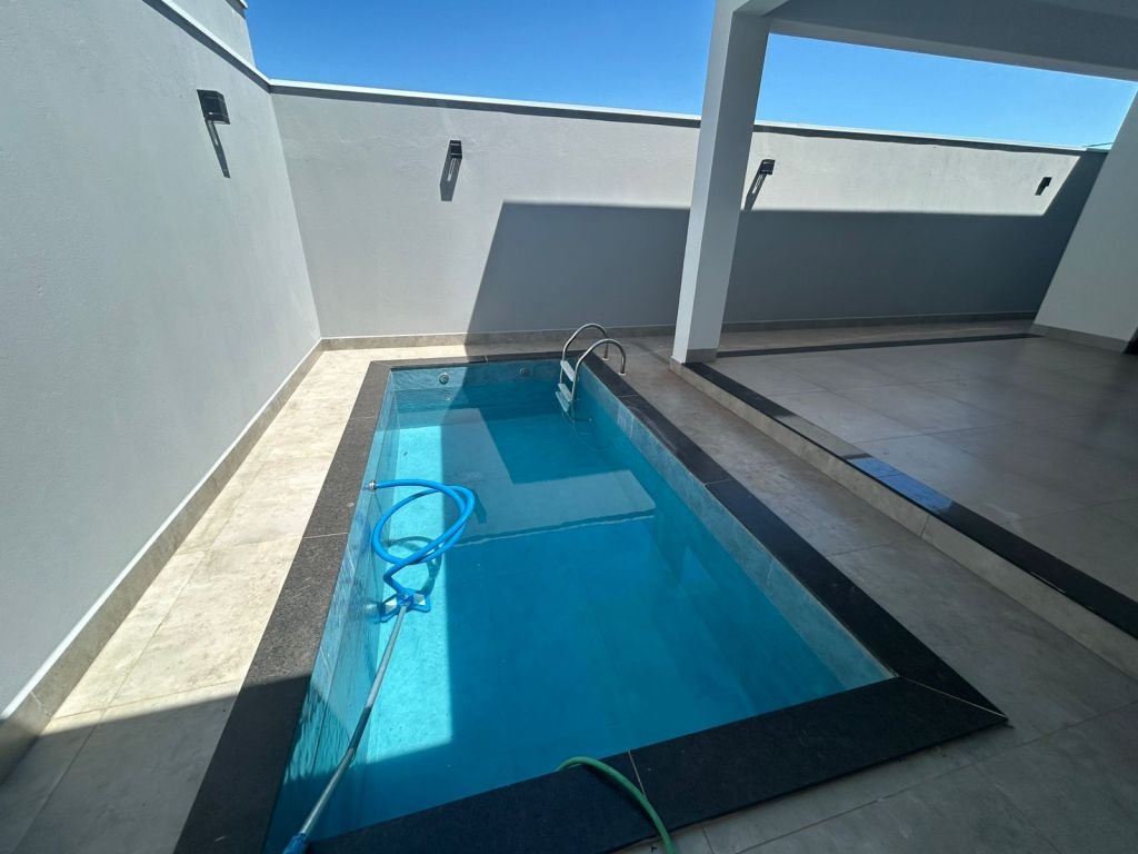03 DORMITÓRIOS SENDO 01 SUÍTE, SALA AMPLA COM PÉ DIREITO ALTO, BANHEIRO SOCIAL, COZINHA, ÁREA DE SERVIÇO FECHADA, ÁREA GOURMET COM PISCINA E GARAGEM COBERTA PARA 02 CARROS.