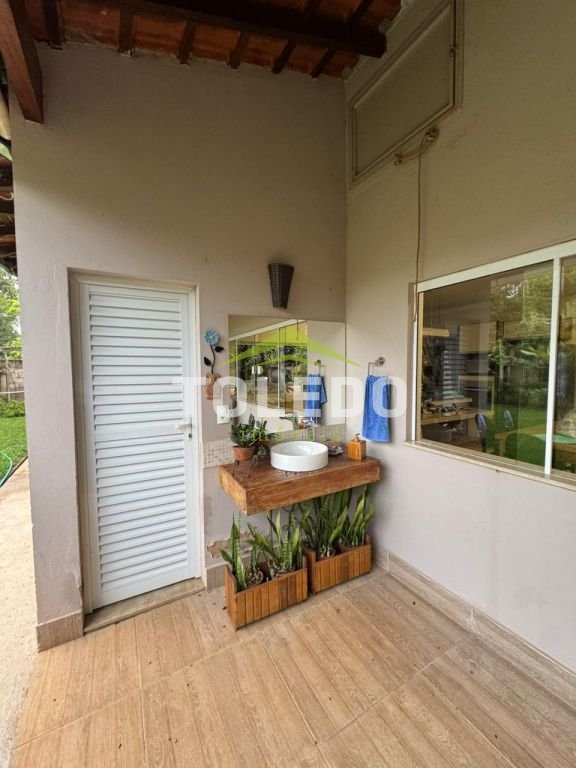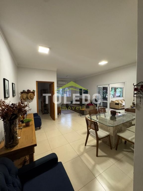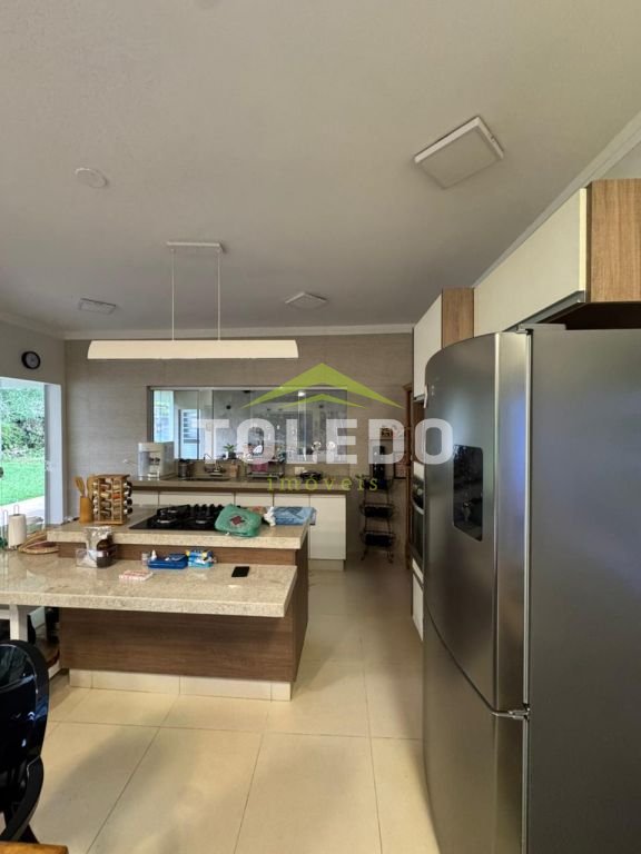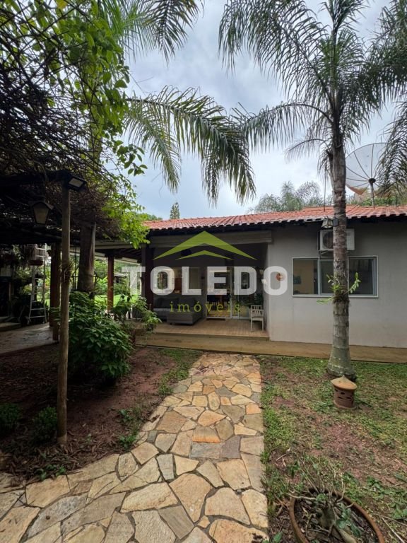 03 dormitórios sendo 02 suítes, uma com armário planejado, as duas suítes com ar condicionado, sala 02 ambientes com ar condicionado, sala de jantar, cozinha completa e planejada com ilha, varanda, salão com churrasqueira, 02 despensas externas (que pode ser dormitório), lavabo externo, rancho gourmet rustico, piscina aquecida e com hidromassagem, paisagismo e pomar com árvores frutíferas, parquinho.