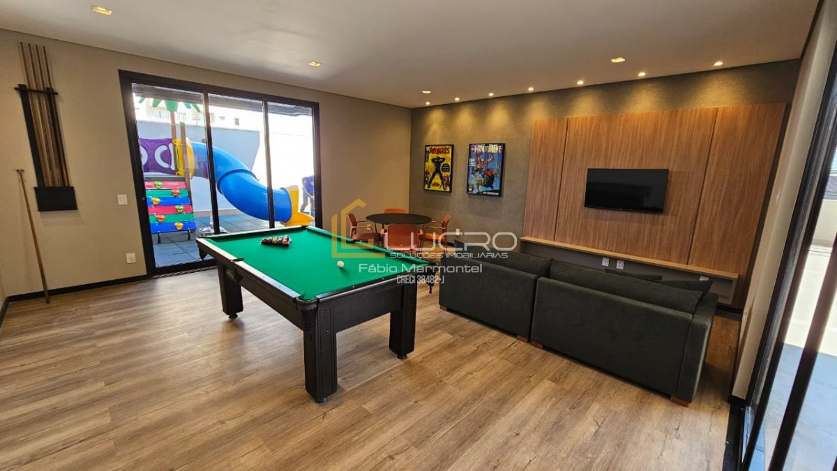 Área de lazer completa, mobiliada, equipada e decorada, distribuída em 2 andares - hall de entrada com pé-direito duplo, salão de festas, área gourmet, churrasqueira, piscinas infantil e adulto com aquecimento, brinquedoteca, salão de jogos, quadra poliesportiva, playground, academia de ginástica, sauna, entre outros.