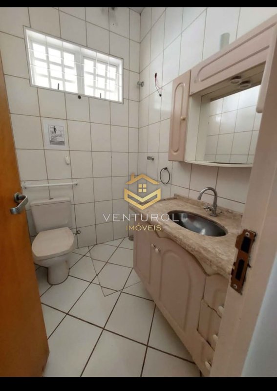 Sala principal com porta de blindex ( recepção ), 3 salas com pia, 3 banheiros, quintal e 2 vagas de garagem