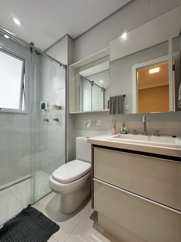 Além de um fino acabamento, o apartamento conta com persianas automatizadas, aquecimento a gás, e varanda com envidraçamento.