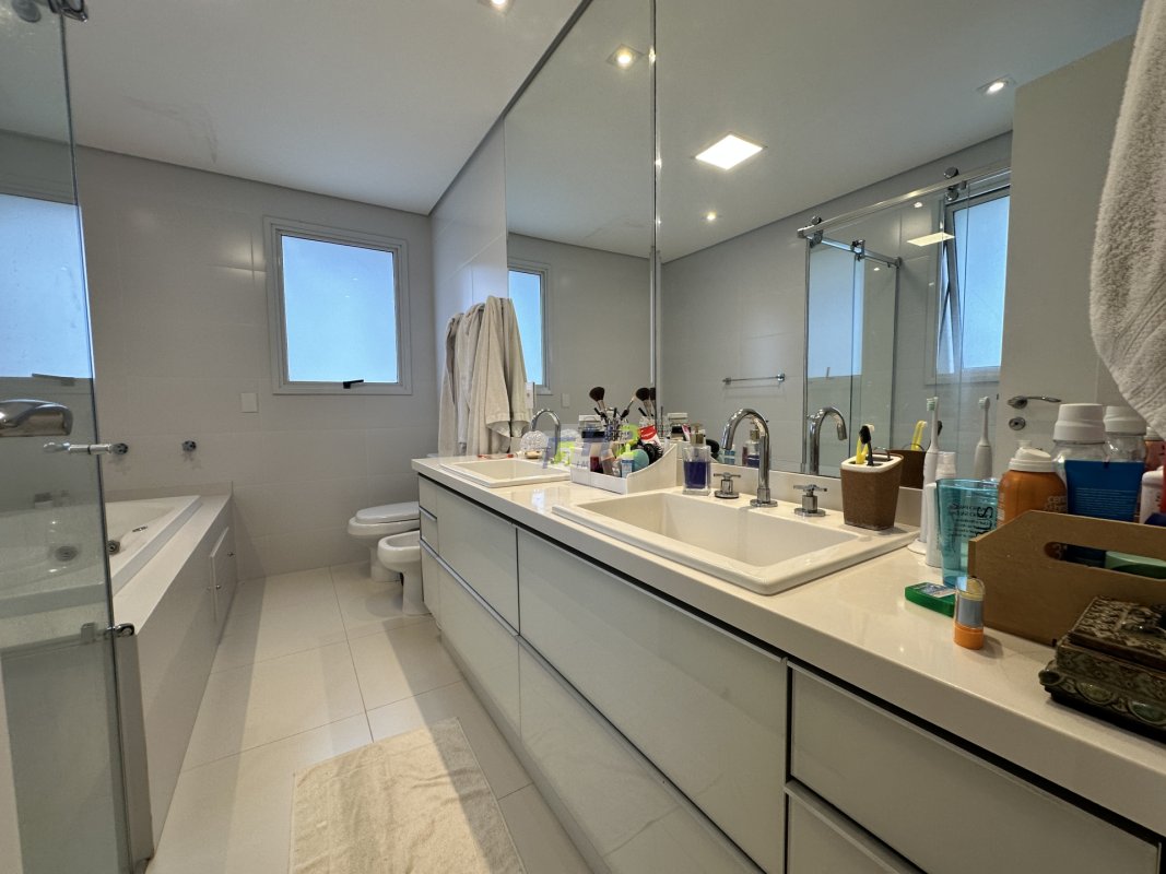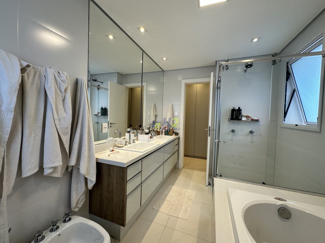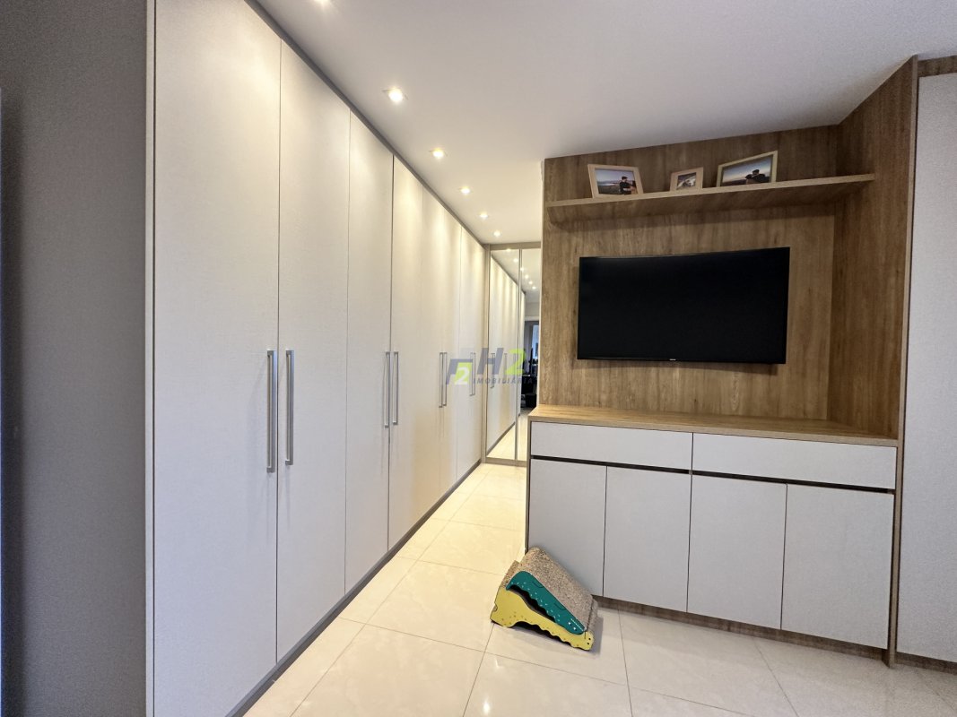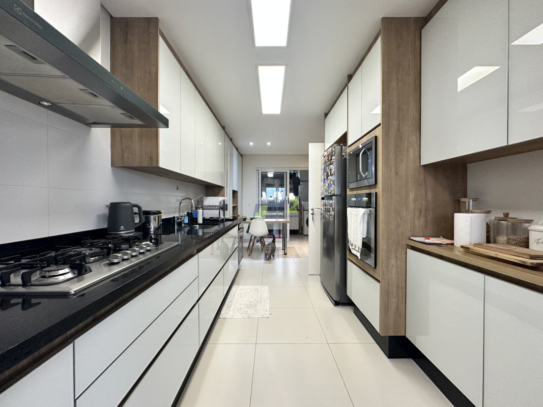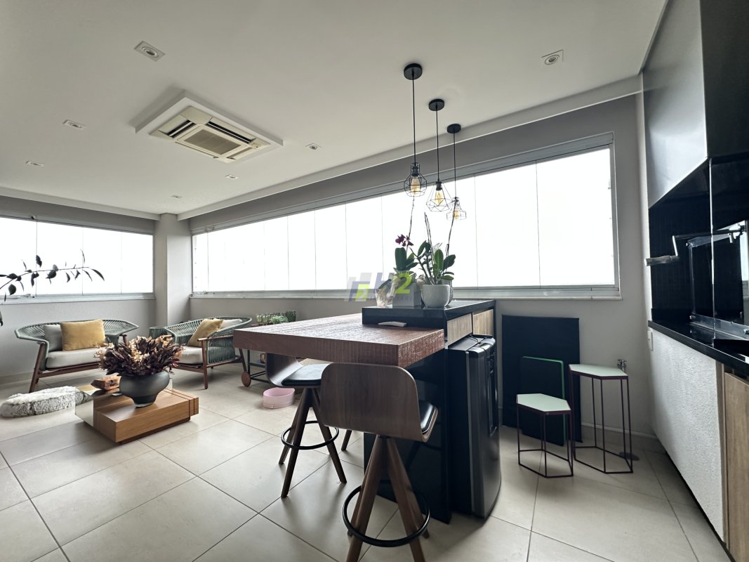 Sala 2 ambientes, lavabo, sala de home, escritório, banheiro social, varanda gourmet integrada com a sala, cozinha planejada, lavanderia, wc de serviço, 3 vagas de garagem e depósito.