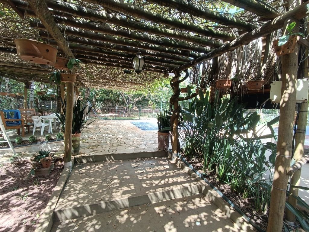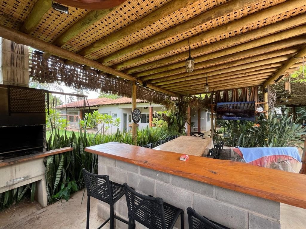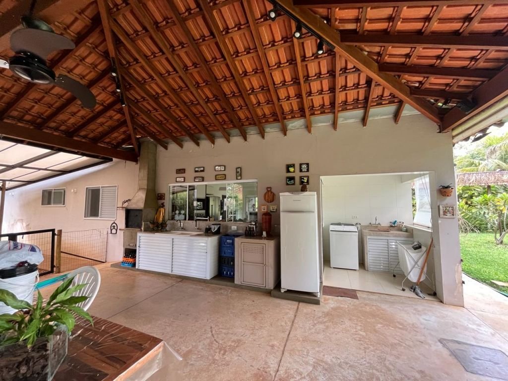 03 DORMITÓRIOS, SENDO DUAS SUÍTES, 02 SALAS INTEGRADAS, SENDO UMA INTEGRADA COM A COZINHA C/ILHA, BANHEIRO SOCIAL, LAVANDERIA, 02 ÁREAS GOURMET, 02 DESPENSAS, BANHEIRO EXTERNO, PISCINA AQUECIDA E AMPLA ÁREA DE GRAMADO, PAISAGISMO E CANIL.
