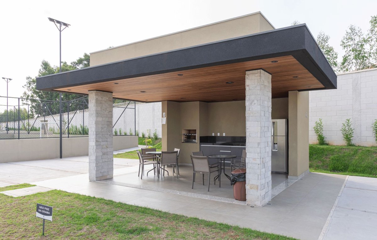 O imóvel também oferece diversos diferenciais, churrasqueira para você aproveitar nos momentos de descontração, aproveite a vida ao máximo com uma piscina à sua disposição e tenha a tranquilidade de saber que seu lar está protegido.
