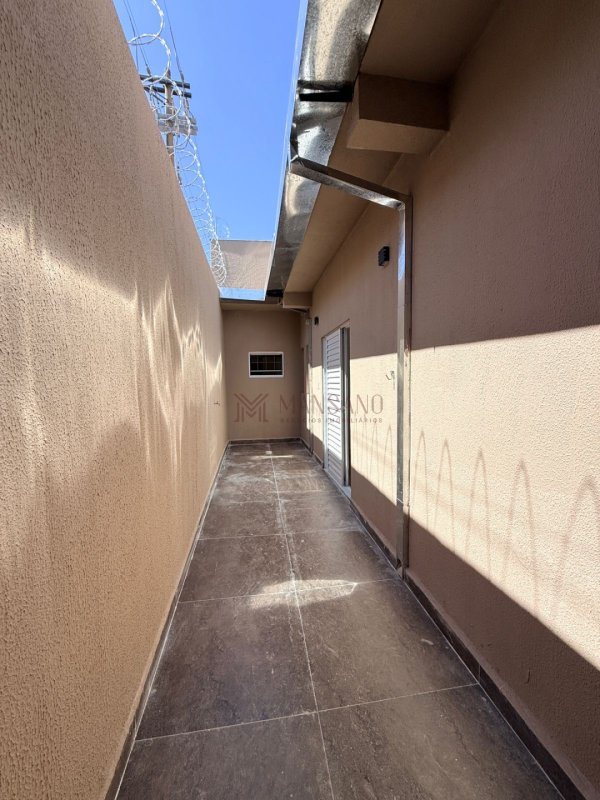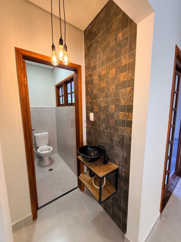 A casa também oferece uma lavanderia funcional, discreta e bem posicionada, além de quintal nas laterais que proporciona ventilação natural e mais liberdade de uso. Para momentos de descontração, há uma churrasqueira, compondo um espaço perfeito para reunir amigos e familiares.